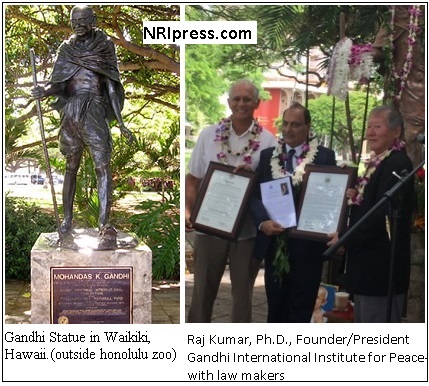 The Gandhi International Institute for Peace founded on September 11, 2001 by Dr. Raj Kumar in Honolulu, Hawaii, held its second annual event to celebrate the 147th birthday of Mahatma Gandhi on October 2 outside Honolulu Zoo. Dr. Kumar released his new book, Gandhi’s Wisdom For you, a compilation of 108 best quotes for self-realization, social change and world peace on this auspicious day. .