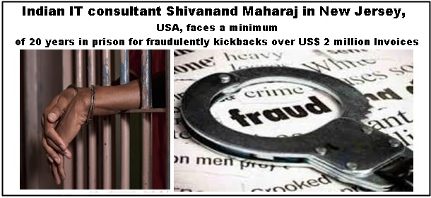 Indian IT consultant Shivanand Maharaj in New Jersey, USA, faces a minimum of 20 years in prison for fraudulently kickbacks over US$ 2 million Invoices