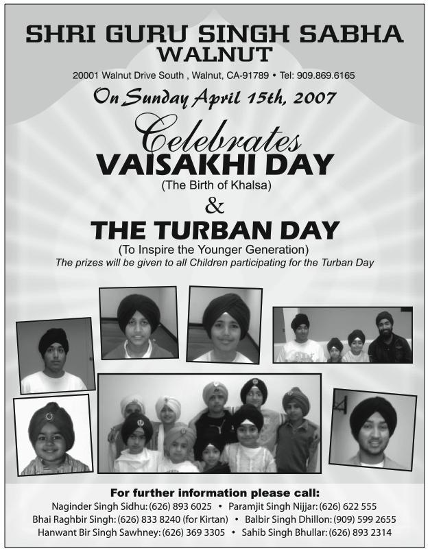 Sri Guru Singh Sabha Walnut will be celebrating Vaisakhi and Turban