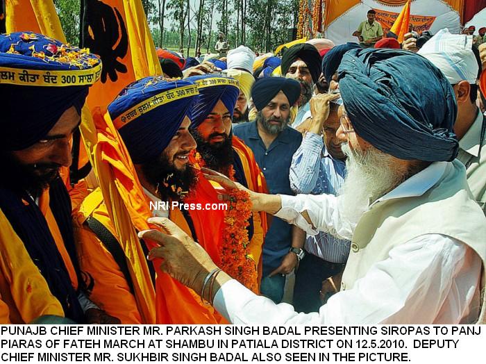 Fateh March on the occasion of Tercentenary Celebrations of Sirhind Fateh Diwas dedicated to Baba Banda Singh Bahadur was accorded a rousing welcome here by the Punjab Chief Minister Mr. Parkash Singh Badal along with his Deputy and President Shiromani Akali Dal Mr. Sukhbir Singh Badal when it entered the Punjab’s territory here after covering a distance of nearly 2500 Kms from Nanded.