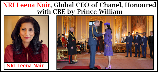 NRI Leena Nair, Global CEO of French luxury fashion house of Chanel, Honoured with CBE by Prince William