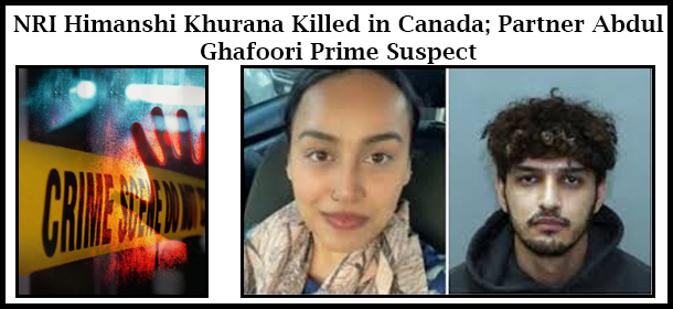 NRI Himanshi Khurana has been found murdered in Canada. Canadian authorities have identified her partner, Abdul Ghafoori, as the prime suspect in the case, according to preliminary investigations.