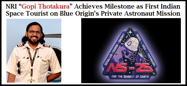 NRI “Gopi Thotakura” Achieves Milestone as First Indian Space Tourist on Blue Origin's Private Astronaut Mission