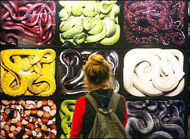 A woman watches photographs by Italian artist Guido Mocafico in Paris