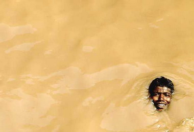 Muddy waters ... an Indian boy seeks respite from the heat in Bombay. The mercury rose above 35 degrees in the city and is expected to get hotter with the advent of summer