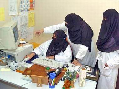 177_ Saudi veiled women doctors work at a hospital in Riyadh. Voters in Saudi Arabia's Eastern Province go to the polls in the second stage of the country's landmark local elections