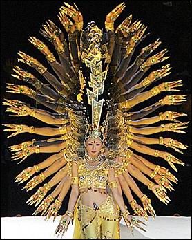 Members of a Chinese dance group perform during the 2004 Paralympic Games closing ceremony in the Olympic stadium in Athens sports complex.