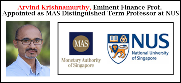 Prof. Arvind Krishnamurthy Appointed as the MAS Distinguished Term Professor in Economics and Finance from 18 to 28 February 2026 by The National University of Singapore (NUS) and the Monetary Authority of Singapore (MAS). Under the terms of the appointment, Professor Krishnamurthy will engage with the NUS Business School’s Department of Real Estate and partner with MAS’s Economic Policy Group.
