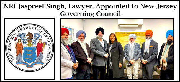 NRI Jaspreet Singh, US-based attorney-at-law, has been appointed to the New Jersey Governing Council, a significant achievement for the Indian American community and immigrant representation in local governance.