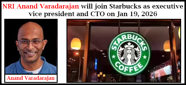NRI Anand Varadarajan, technology leader, has been appointed Executive Vice President and Chief Technology Officer (CTO) of Starbucks, and will assume his new role on January 19, 2026. In this position, he will oversee the company’s global technology strategy, focusing on digital innovation, platforms, and technology-driven customer experiences.
