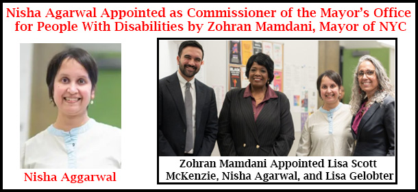 Nisha Agarwal Appointed as Commissioner of the Mayor’s Office for People With Disabilities by Zohran Mamdani, Mayor of NYC