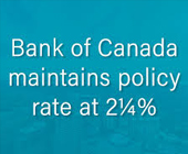 The Bank of Canada today held its target for the overnight rate at 2.25%, with the Bank Rate at 2.5% and the deposit rate at 2.20%. The outlook for the global and Canadian economies is little changed relative to the projection in the October Monetary Policy Report (MPR). However, the outlook is vulnerable to unpredictable US trade policies and geopolitical risks. Economic growth in the United States continues to outpace expectations and is projected to remain solid...Read More |