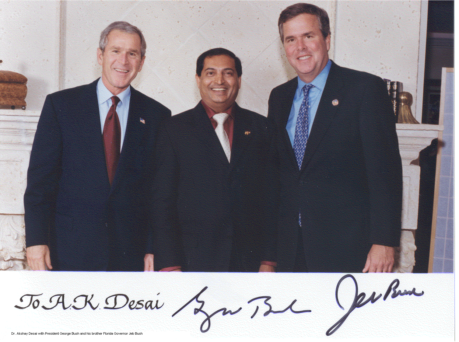 President Bush, Dr. Desai, and Governor- Jeb Bush