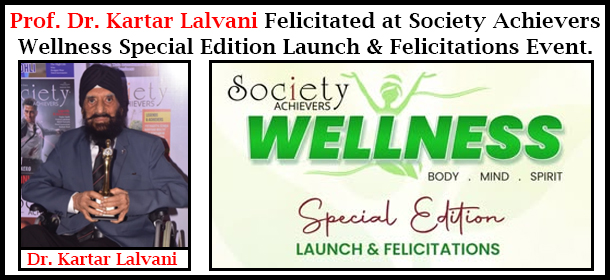 Prof. Dr. Kartar Lalvani Felicitated at Society Achievers Wellness Special Edition Launch & Felicitations Event.