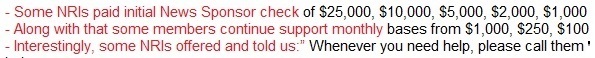 More than 90% below NRI Philanthropists, Entrepreneurs and Business Owners have contributed over $200,000 ($1000, $5000, $15000 and $25,000) to sponsor News so that NRI's voice must be heard worldwide. Others have great contribution through IT, News support services.