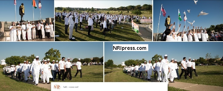 Mahatma Gandhi Memorial of North Texas (MGMNT) celebrated Gandhiji’s 147th birthday on October 2nd at Mahatma Gandhi Memorial Plaza in Irving (Dallas), TX with hundreds of people participating in “Gandhi Peace Walk” led by IANT. It was a quite scenic event to watch as children, men and women wore white dress and white caps. Mrs. Archana Prasad, Great Granddaughter of Mahatma Gandhi along with her husband Mr. Hari Prasad attended as Chief Guests of Honor. Mrs. Shabnam Modgil, MGMNT Director welcomed the gathering and reminded everyone that United Nations declared October 2nd as International Day of Non-violence. Mr. Rao Kalvala, MGMNT Secretary briefed about the hard work and approval process of having this largest Gandhi memorial in USA and thanked City of Irving and the community. Mrs. Indu Reddy Mandadi, MGMNT Co-chair stated having Gandhi Peace Walk at Gandhi Memorial is a unique and many other communities may not have this kind of opportunity. She thanked India Association of North Texas volunteers and MGMNT leadership for making all the needed arrangements for this meaningful walk.