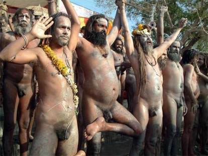 The Naga sadhus from Niranjan Akhada preparing for their holy bath in historical Kshipra river in Ujjain at the opening of this century's first 'Simhasta at Madhya Pradesh
