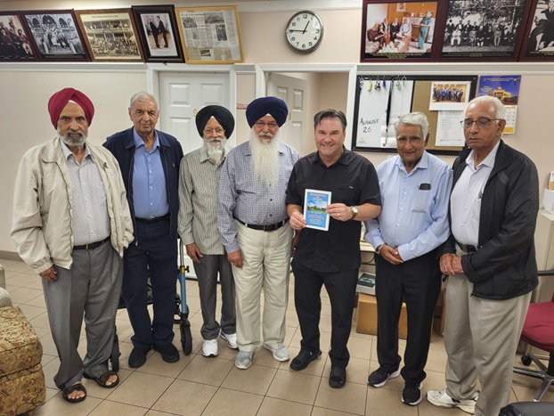 Long time Vancouver Kingsway Member of Parliament, Don Davis, visited India Cultural Centre of Canada Gurdwara Nanak Niwas recently. He was accompanied by community activist Sarwan Singh Randhawa. Mr. Davis is closely associated with the South Asian/Punjabi community. Long time New Democrat, Davis has been serving his constituents as an MP for sixteen years. After paying obeisance to Shri Guru Granth Sahib ji in the Darbar Hall, Don took a guided tour of the Gurdwara Sahib. He was very impressed with this spacious place of worship and admired the Gurdwara management for its contribution to not only to the Punjabi community but also the community at large. He was pleasantly surprised to learn that this place of worship also serves as the headquarter of the popular Highway to Heaven Association. More than 25 places of worship along this small stretch of #5 Road is popularly known as Richmond's Highway to Heaven. Gurdwara Nanak Niwas is also very popular for weddings. Afterwards, Mr. Davis had a very enjoyable conversation with some members of the Gurdwara management. Before leaving Davis enjoyed a delicious vegetarian langar and profusely thanked the Gurdwara Management for a very warm welcome. Gurdwara President Mohan Singh Sandhu and Secretary Balwant Singh Sanghera thanked Mr. Davis and Mr. Randhawa for their visit. (Picture from left to right : Sarwan Singh Randhawa, Gurcharan Singh Grewal, Avtar Singh Saddhar, Mohan Singh Sandhu, Don Davis, Balwant Singh Sanghera and Chain Singh Batth ).