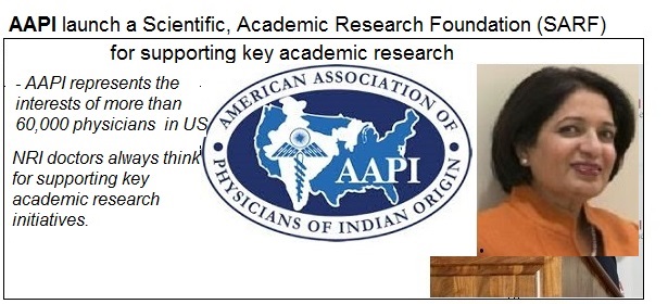 New York, July 6, 2015, IANS: The American Association of Physicians of Indian Origin (AAPI), the largest ethnic association of medical professionals in the US, has launched a Scientific, Academic Research Foundation (SARF) for supporting key academic research initiatives.