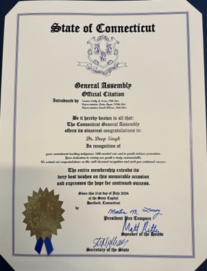 State of Connecticut General Assembly Recognizes Dr. Deep Singh- Gatka