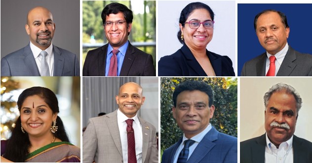 Kerala Center 2024 Awardees: Top row, from l. to r., Wesley Mathews, Hashim Mooppan, Esq., Suja Thomas and Varkey Abraham; Bottom row, from l. to r. Dr. Sunanda Nair, Sibu Nair, Johnson Samuel and Samcy Kodumon
