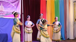 The evening continued with another exquisite dance performance by Ms. Rajeswari and her team, further enhancing the festive atmosphere. A standout performance came from a promising young dancer of Mohiniyattam, Ms. Aswathi, who is following in Dr. Ravi’s footsteps. As the evening progressed, other artists, including Shahi Prabakaran and Anu Gopal with their team, contributed to the vibrant energy, setting the stage for the grand finale, the highlight of the event, a rich and artistic portrayal of Mohiniyattam named “MOKSHA”, featuring Dr. Ravi and her team, including our very own talented Mrs. Saroopa, who is also the WMC entertainment chair. The 40 minute long dance “MOKSHA” portrayed a powerful musical expression of mohiniyattam while narrating a story from the Mahabharata, the timeless ancient epic from India. The program concluded with a thanksgiving speech by our WMC entertainment chair, Mrs. Saroopa, followed by dinner for all attendees. Overall, the event was well-attended, and the audience thoroughly enjoyed the performances throughout the evening.