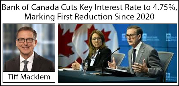 Bank of Canada Cuts Key Interest Rate to 4.75%,
