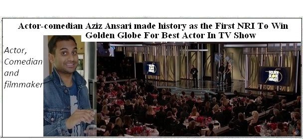 NRI Aziz Ansari who was born in Columbia, South Carolina and parents from Tamil Nadu, is the star of Netflix’s “Master Of None” won the Golden Globe for Best Actor in A Television Series Musical or Comedy on Sunday night. He made history as the first NRI (Non resident Indian) to win a best actor award in a television category. at this year’s Golden Globes ceremony.