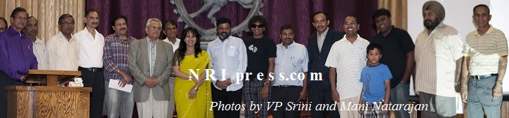 After his speech, Director Vasu was recognized by Chairman B. U. Patel with a Memento. Dr. Subbu Shanmugham introduced Mr. Raj Thiruselvan, who is in the Hollywood movie industry. He was garlanded by Mr. Subash Chandran. Mr. Raj Thiruselvan shared his experience in the industry and spoke at length about his experience producing a number of award winning documentary films, television shows, commercials, and music videos. He spoke about his upcoming project Curry in Love mainly for the American audience, which will be co-directed by Mr. P. Vasu.