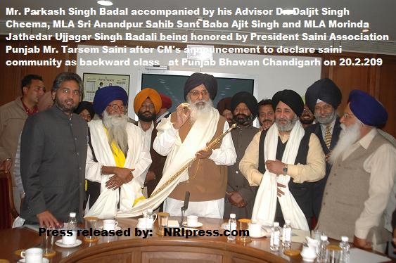 Association Punjab Mr. Tarsem Saini said that the Saini Community