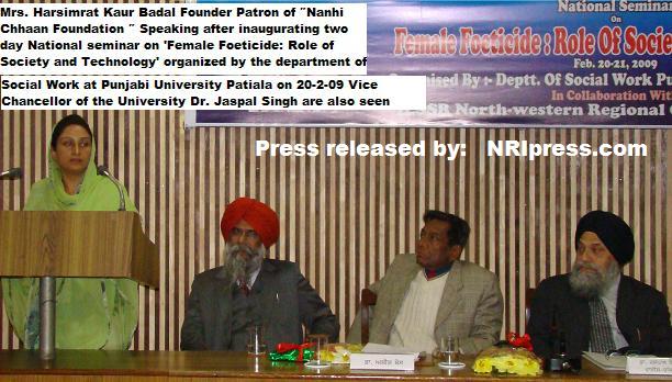 Mrs. Harsimrat Kaur Badal founder patron of `Nanhi Chhaan' and