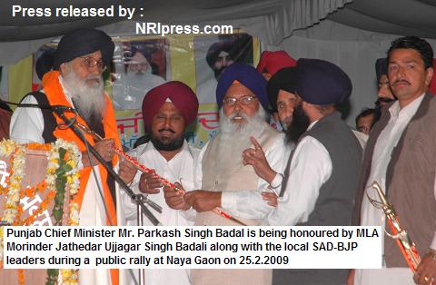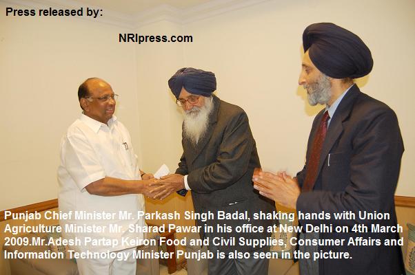 03, 2009: Punjab Chief Minister Mr. Parkash