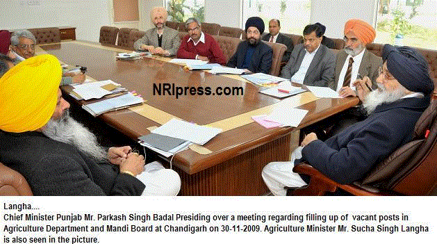 Mr. Badal approved 54 posts of Secretaries and 12 of Assistant Secretaries in the Mandi Board besides 14 posts of Sub-Divisional Officers (Civil), 14 posts of Junior Engineers besides 30 posts each of clerks and steno typists to be recruited soon. Likewise, he also approved 4 new posts of the Executive Engineers along with the supporting staff including 28 Junior Engineers and 9 draftsmen in the engineering wing of the Mandi Board. The Chief Minister also asked the Chief Secretary to constitute a committee to undertake the recruitment process in a transparent manner. The Chief Minister also gave approval to appoint three district Mandi Officers along with the supporting staff of newly created districts of Tarn Taran, Mohali and Barnala. He asked the Chief Secretary to place in the newly appointed officers and officials positively before the onset of procurement of wheat during Rabi marketing season-2010.