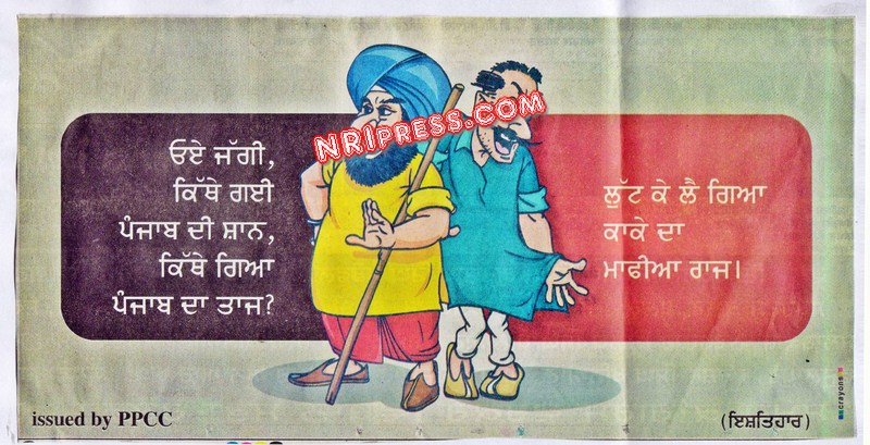 The Punjab Pardesh Congress Committee has issued advertisements in various news papers carrying remarks against the President of Shiromani Akali Dal and attributed Mafia Rule (Mafia Raj) to him in complete violation of the Model Code of Conduct. Such imputations are not only defamatory but are down- write abusive and derogatory which are based upon audacious distortion. Similar content is displayed on various Uni-Polls in various cities of Punjab. The cuttings of the advertisements of various newspapers and photographs of Uni-Polls are annexed here with for your kind perusal.