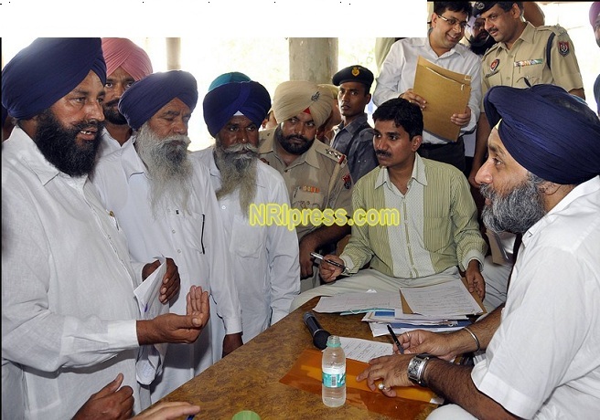 Punjab Deputy Chief Minister Mr, Sukhbir Singh Badal redressing the greivances of people and distributing grants for development works to 53 Panchayats of Moga district in a series of Sangat Darshan held here on July 5, 2011.