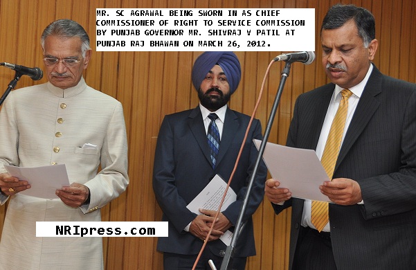 PUNJAB NOTIFIES THE APPOINTMENT OF MR S.C. AGRAWAL AS CHIEF COMMISSIONER OF ‘PUNJAB RIGHT TO SERVICE COMMISSION’