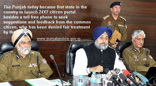 CHANDIGARH, DECEMBER 12: The Punjab today became first state in the country to launch 24X7 citizen portal besides a toll free phone to seek suggestions and feedback from the common citizen, who has been denied fair treatment by the police.