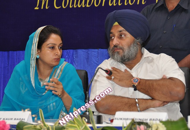 Mr. Sukhbir Singh Badal, Deputy Chief Minister Punjab and Mrs. Harsimrat Kaur Badal, Member Parliament from Bathinda discussing a point during Seminar on “Overseas Marriages” organized by Punjab Police in collaboration with National Commission for Women at Jalandhar on May 30, 2012,
