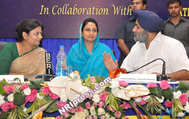 Photo 5: Mr. Sukhbir Singh Badal, Deputy Chief Minister Punjab and Mrs. Harsimrat Kaur Badal, Member Parliament from Bathinda and Mrs. Shamina Shafique, representative of National Commission for Women discussing a point during national level seminar on Overseas Marriages at Jalandhar on May 30, 2012.