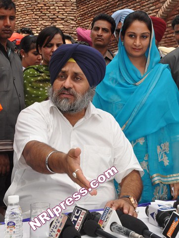 Photo 6 & 7: Mr. Sukhbir Singh Badal, Deputy Chief Minister, Punjab addressing media persons at Jalandhar on May 30, 2012, Member Parliament Mrs. Harsimrat Kaur Badal was also seen in the picture.