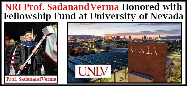 | NRI  Prof. Sadanand Verma Honored with Fellowship Fund at University of Nevada