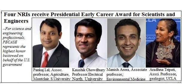 Los Angeles, January 12, 2017When President Barack Obama announced the names of the researchers   who have been awarded the Presidential Early Career Awards for   Scientists and Engineers (PECASE) this week, four NRIs- Pankaj Lal, Associate professor,  Agriculture, Montclair State University,  Kaushik Chowdhury Professor Electrical  Northeastern University,