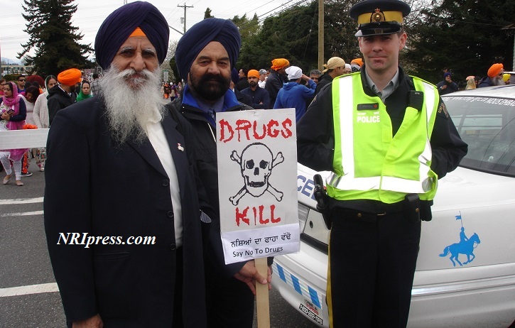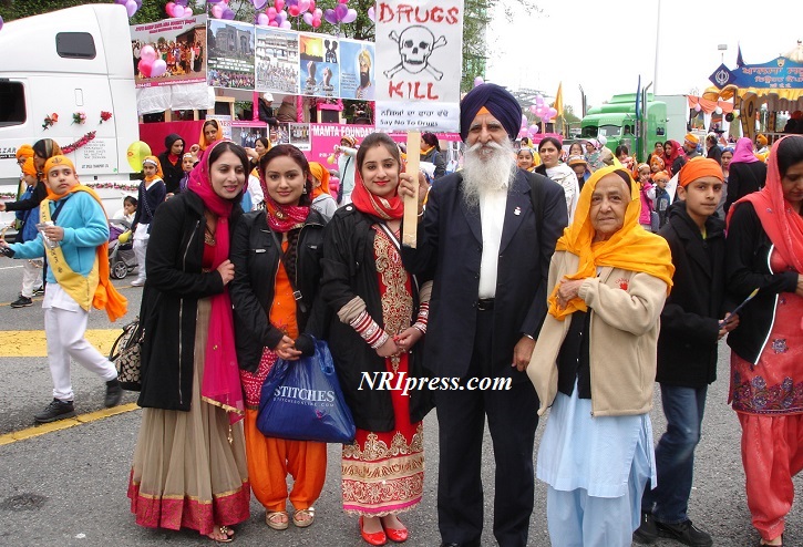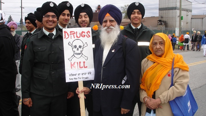 This year, the Vaisakhi day was a massive and multicolored event attended by around 2.5 Lac participants hailing from different parts of Canada and across its borders like USA. Small children were seen enjoying the event with fervor in colorful dresses. In spite of bad weather, 80 year old couple Dr Raghbir Singh Bains Drug Therapist and his wife Parmjit Kaur Bains were once again seen active in distributing fliers, contacting and addressing young boys, girls, their parents, Gatka parties, social activists, security forces and socio-religious groups to clean the society of the shameful hazard of drugs, and other social evils prevalent in the society.