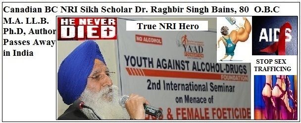 Canadian BC NRI Sikh Scholar Dr. Raghbir Singh Bains, 80 O.B.C M.A. LL.B. Ph.D, Author Passes Away in India