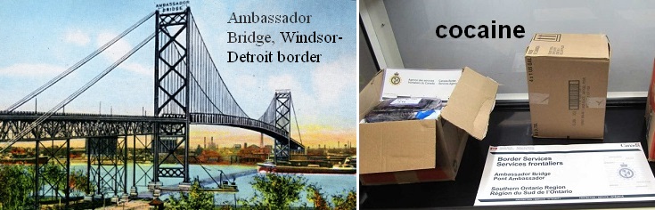 Two truck drivers, NRI Sukdeep Singh, 31, of Brampton, and Inderjeet Singh, 26, of Lindsay, were arrested and both face charges after Canada Border Services Agency (CBSA) seized boxes containing 38 kilograms cocaine, worth $4.8M from a transport truck at the Windsor-Detroit border. On March 17, the truck was carrying a mixed load of citrus fruit, was stopped as it entered Canada.
