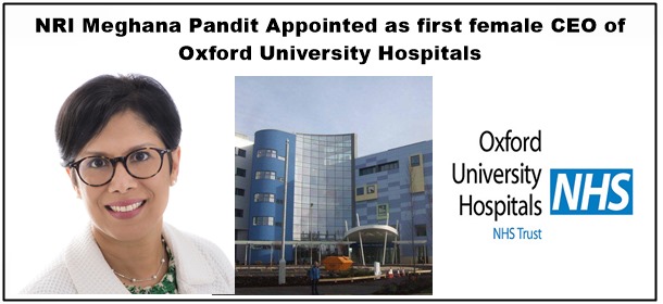 NRI Professor Meghana Pandit has been appointed as the first female Chief Executive Officer (CEO) of the Oxford University Hospitals NHS Foundation Trust.