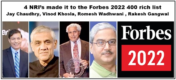 4 NRI’s made it to the Forbes 2022 400 rich list