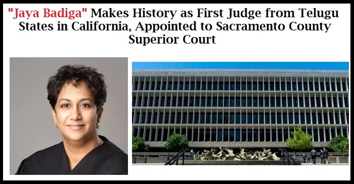 Jaya Badiga Makes History as First Judge from Telugu States in California, Appointed to Sacramento County Superior Court