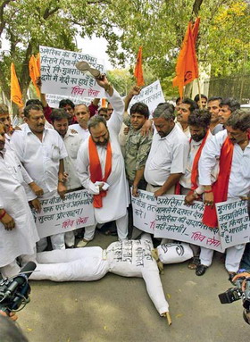 burning it, after Narendra Modi was denied a US visa in New Delhi.