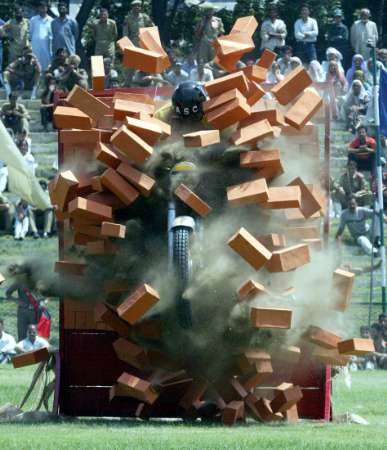 A dare-devil motorcyclist from the Indian army rides through a brick wall during Independence Day celebrations in Srinagar on Aug 15- (63)